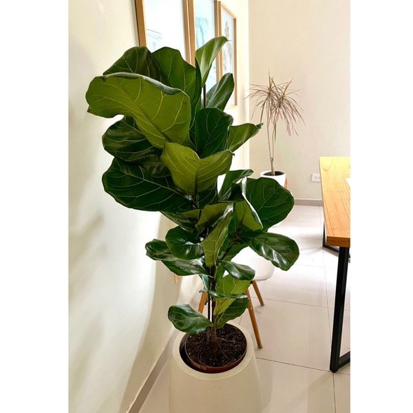 Conocido también como Ficus Lyrata o “Ábol Lira”, esta especie tiene hojas grandes y brillantes de forma particular y nervaduras bien marcadas 😍